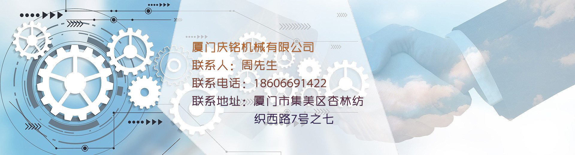 制作大圓機心臟和傳動零配件。供應臺灣和大陸機械廠,至今三十多年歷史。經(jīng)過不斷的辛勤努力,2000年在大陸福建省成立了廈門慶祥銘機械有限公司,2015年公司改組為廈門慶銘機械有限公司。